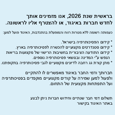 4. קידום התודעה הציבורית בנושאי הפסיכותרפיה.