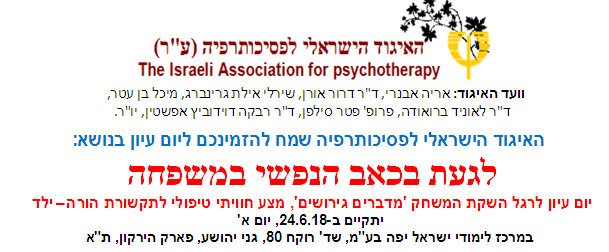 האיגוד הישראלי לפסיכותרפיה שמח להזמינכם ליום עיון בנושא: לגעת בכאב הנפשי במשפחה, יום עיון לרגל השקת המשחק 'מדברים גירושים', מצע